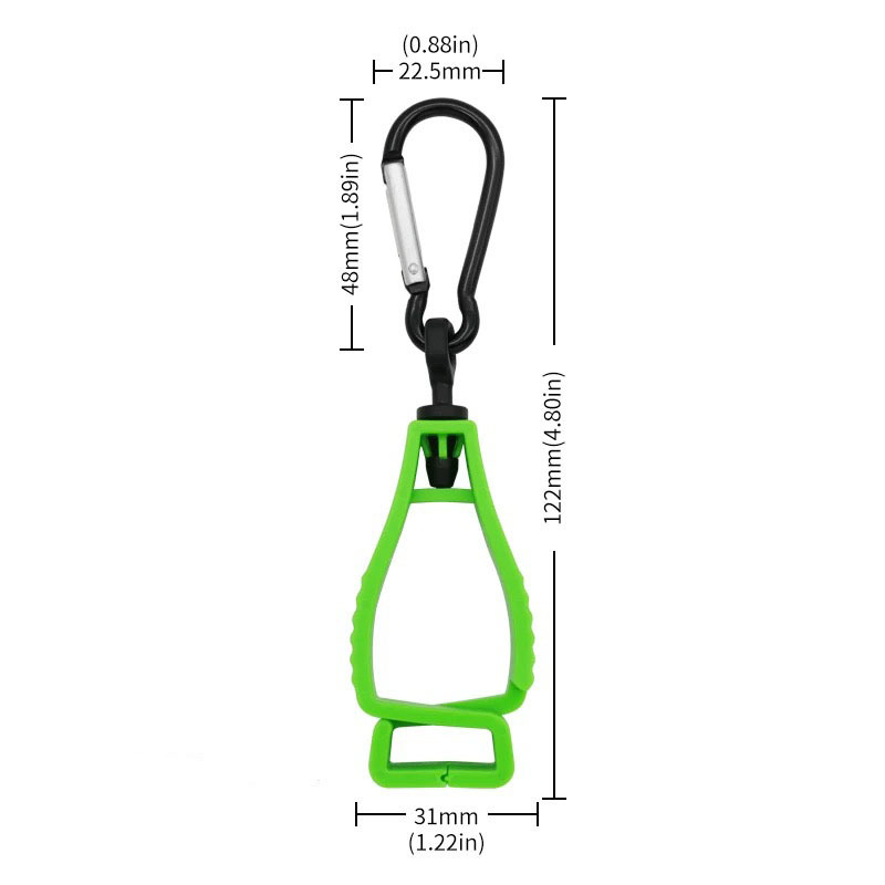 Innowacyjna konstrukcja: uchwyt do rękawic jest ergonomicznie zaprojektowany, zaciski do rękawic można otwierać delikatnym szczypaniem, a następnie zamykać po rozluźnieniu.do stosowania z karabinami, pierścienie D, itp. Przeciwpoślizgowy wieszak do rękawiczek z pasem pomaga skutecznie uniknąć utraty rękawiczki roboczej.