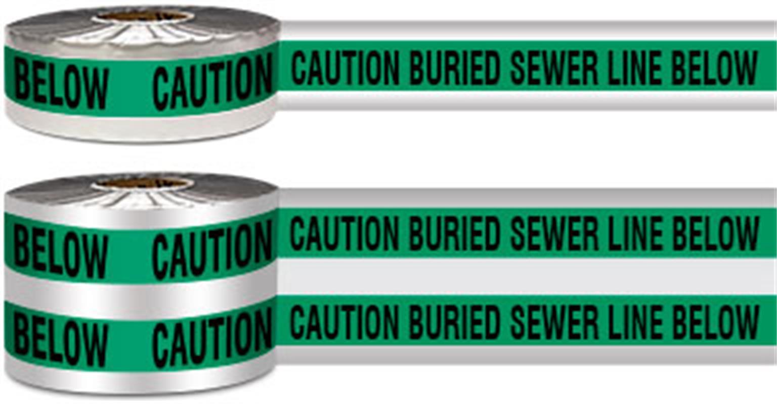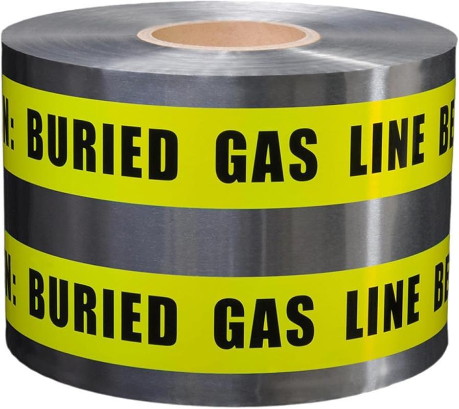 Detectable Underground Warning Tape is a specially laminated pet / foil / poly blend. This amazing blend (with polyester) provides exceptional strength characteristics when compared to other all polyethylene type detectable warning tapes. The bold black message on its APWA color coded background is treated so as not to degrade or fade when exposed to alkalis, acids and or any other destructive elements underground.